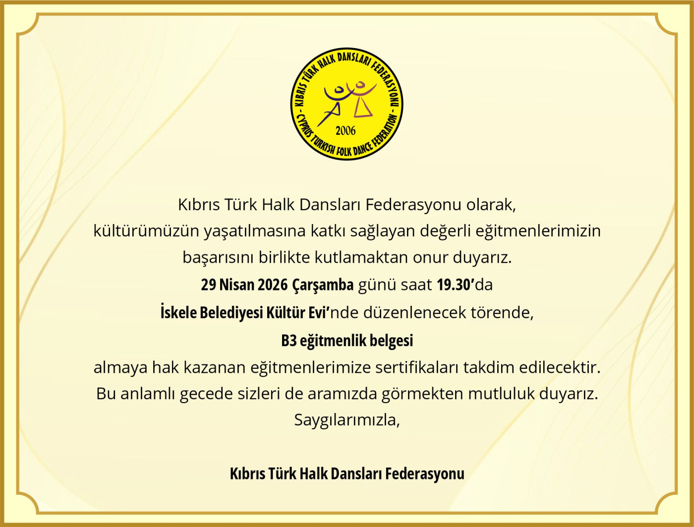 24 Nisan 2026 Yazdır Eposta Tweet B3 eğitmenlik belgesi dağıtım töreni Bu kategoriden diğerleri: « 23 Nisan
